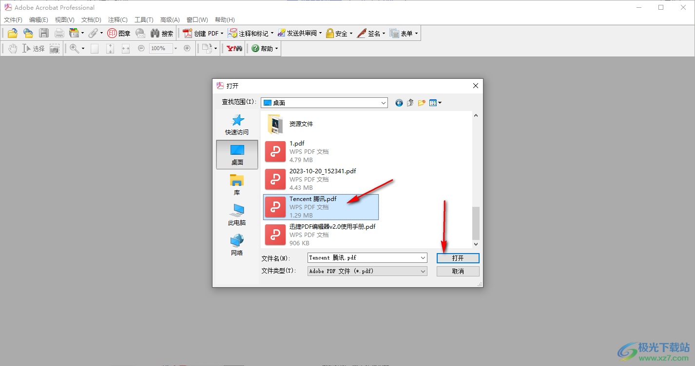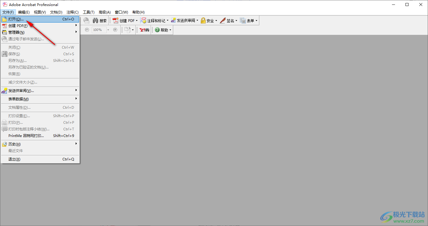 1.当我们进入到Adobe Acrobat之后,直接点击页面上的【文件】-【打开】选项。