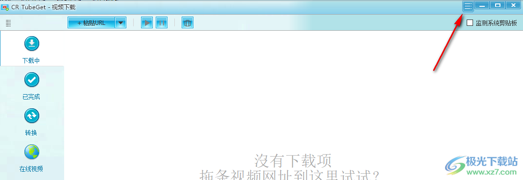 1、第一步,我们先在电脑中打开CR TubeGet软件,然后在软件的右上角点击打开“三”图标