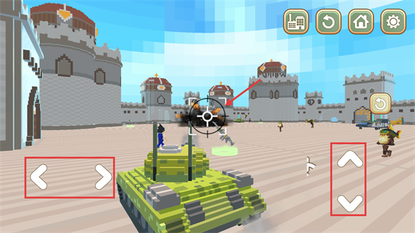 1、靠【移动摇杆】控走位,配合【机枪】的强力输出,将敌人击败吧。