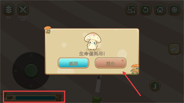 4、若出现【生命值耗尽】提示,可选【返回】重置场景,或点【重生】续战呢。