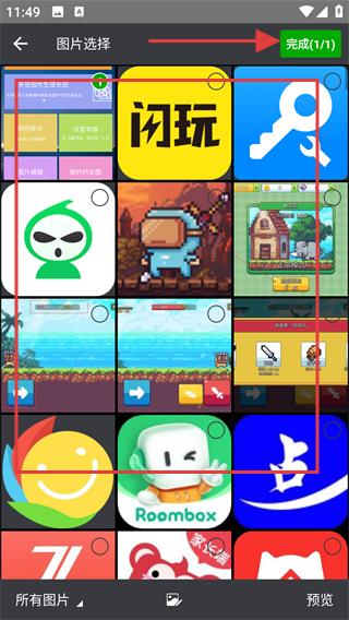 2、进入图片选择页后勾选目标图片,点击【完成】。