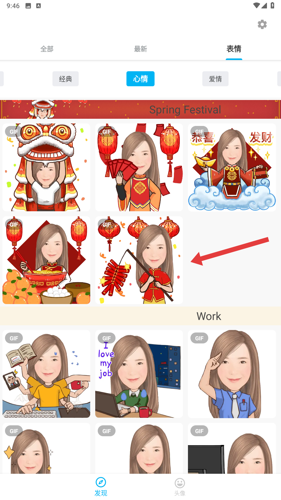 2、进入发现页面后,找到【表情】标签并点击,就能进入表情包制作的专属区域,开启趣味创作啦。