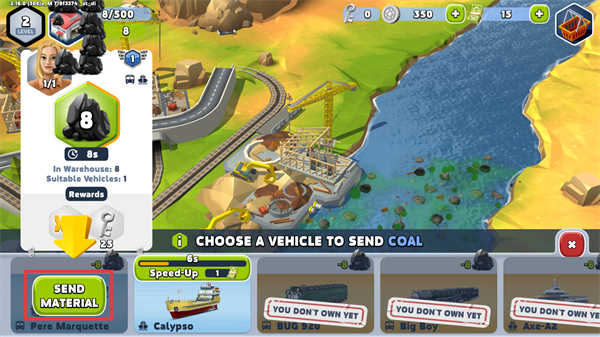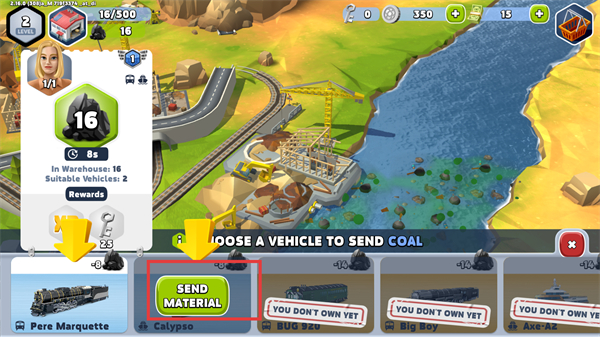 1、在资源运输任务中,需选择合适的载具,点击【SENDMATERIAL】执行煤炭运输任务,推动任务进程。