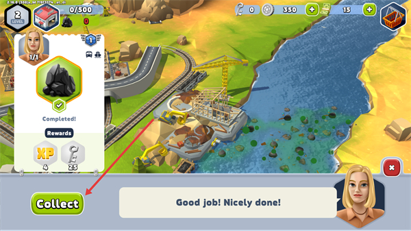 3、运输任务完成后,及时点击【Collect】领取奖励,包括经验(XP)和钥匙等资源,同时更新资源库存。