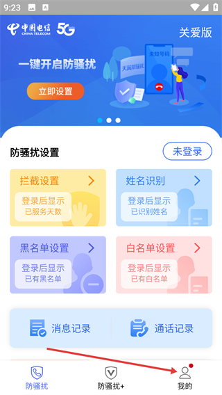 1、打开天翼防骚扰APP,在温馨提示页勾选【我已阅读并同意】,点击【我同意】进入主界面。