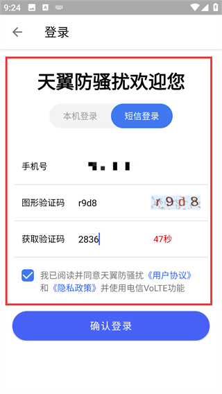 4、在登录界面输入手机号、图形验证码,获取并填写短信验证码,勾选协议后点击【确认登录】,即可完成账号登录。