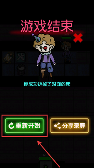 4、成功拆床后,点击【重新开始】按钮,可再次挑战,体验其他玩法。