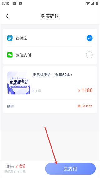 4、选择对应的支付方式(如支付宝、微信支付)后,点击“去支付”按钮,完成课程报名。