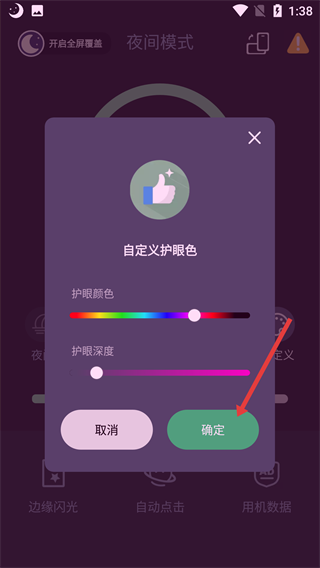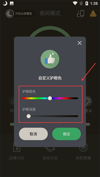 2、在自定义护眼色弹窗内,通过滑块选择色调和显示强度,适配个人视觉需求。