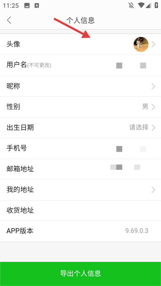3、在个人信息页面点击【头像】,进入更换头像界面。