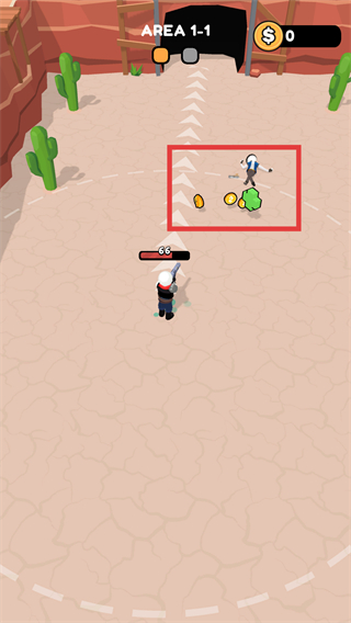 3、消灭敌人后,收集红色框内的金币和绿色道具,积累资源。