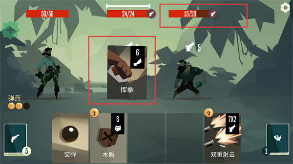 3、当弹药不足时,使用“挥拳”卡牌进行近战攻击,持续对敌人造成伤害,维持战斗的持续性。