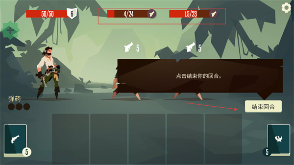 4、回合结束时点击“结束回合”,完成当前回合的操作,进入敌人回合。