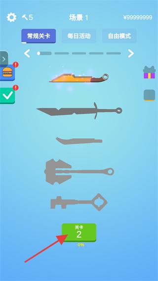 4、剑制作完成后,点击绿色箭头指向的按钮,进入下一个环节。