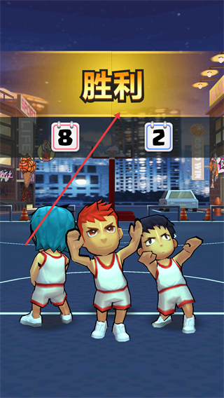 3、比赛结束后显示【胜利】,最终比分8-2,我方通过多次进攻(如三分球、灌篮)建立优势。