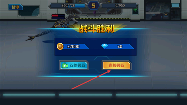 4、战斗胜利后可获得2000金币奖励,选择“直接领取”快速获取资源。