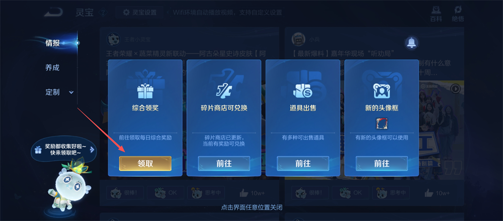 2、在灵宝界面中,看到【综合领奖】板块就点击领取,这样每日的综合奖励就能轻松收入囊中啦。