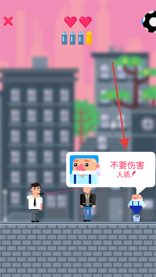 3、射击时注意提示【不要伤害人质】,瞄准敌人避开人质位置以完成关卡目标。