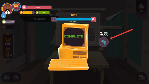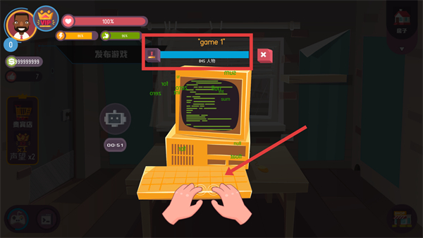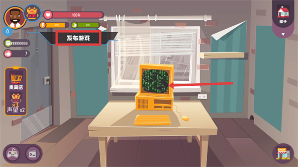 1、在“发布游戏”任务界面,点击红框内的黄色电脑设备,触发任务交互流程。
