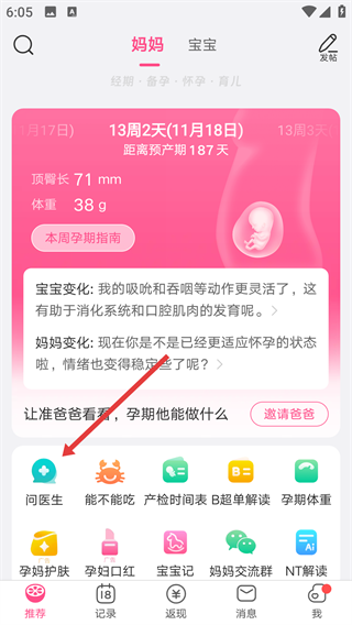 1、打开美柚软件,在首页点击【问医生】,进入医疗咨询板块,开启问医流程呀。