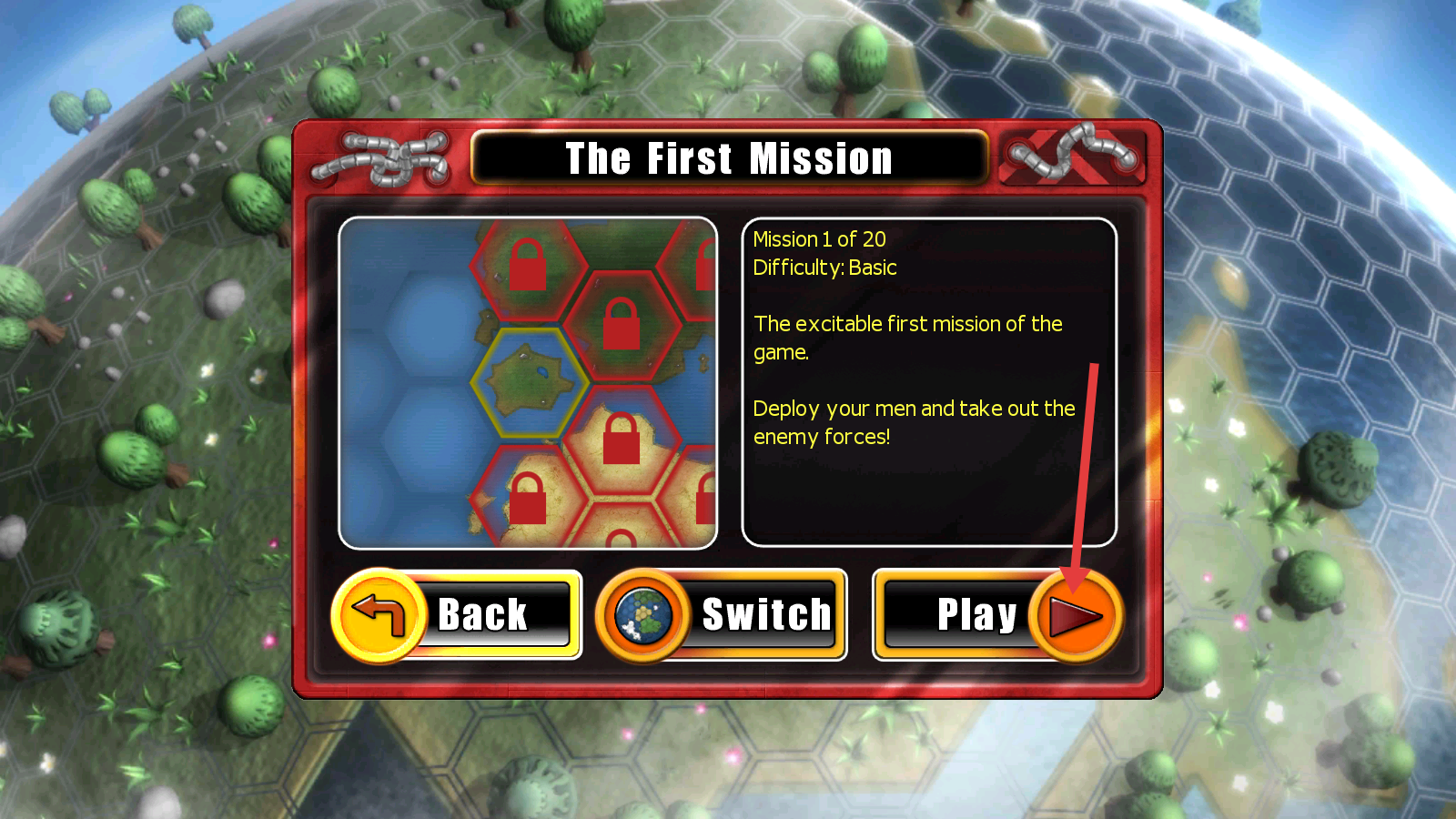 2、在任务选择界面,点击红色箭头指向的【Play】按钮,开始第一个任务。