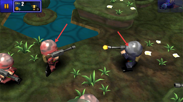 4、操控士兵向红色箭头指向的敌方士兵发起攻击,消灭敌人。