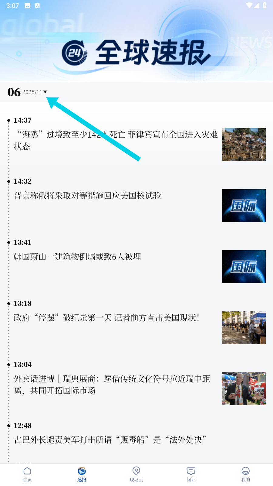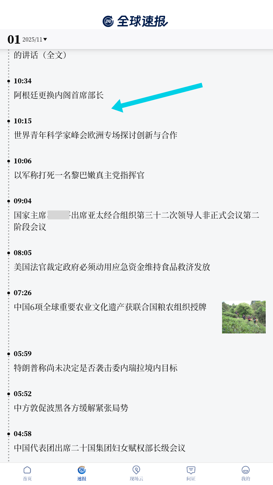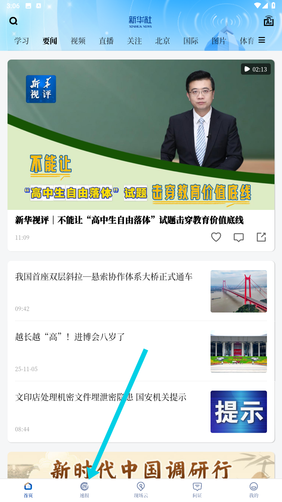 1、打开新华社,点击底部【速报】按钮,进入全球速报新闻板块,这里能看到最新的时事动态哦。