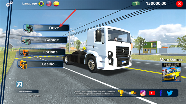 1、点击红色箭头指向的【Drive】按钮,进入驾驶模式。