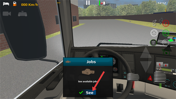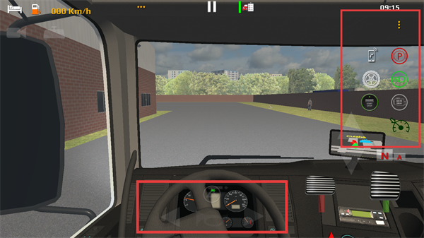 4、熟悉红色方框内的驾驶控制区域和功能按钮,开始驾驶卡车执行任务。