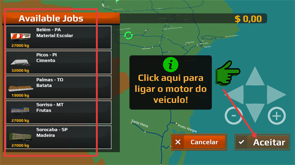 3、在红色方框内的可用工作列表中,选择任务后点击红色箭头指向的【Aceitar】按钮接受任务。