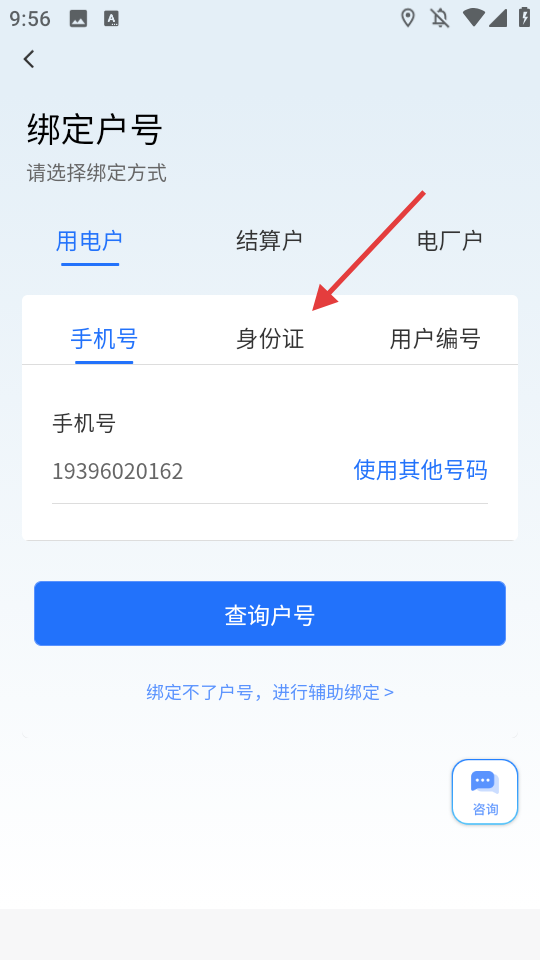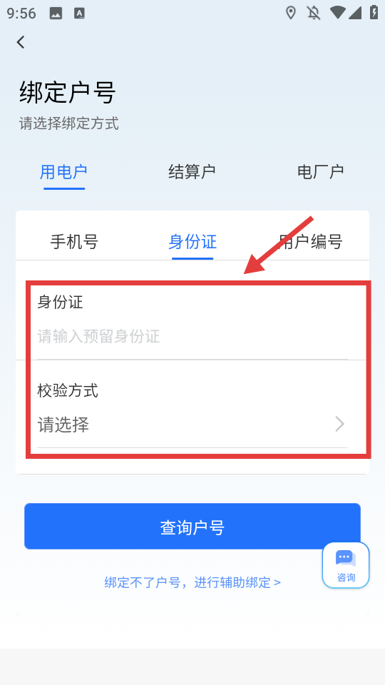 2、选择【身份证】绑定方式,准备填写身份信息。