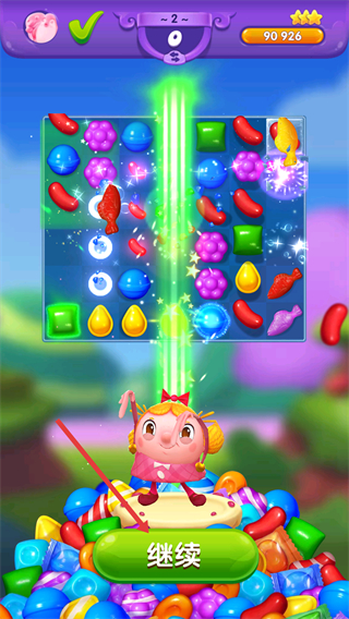 4、关卡完成后,点击【继续】按钮,进入下一个糖果消除关卡继续挑战。