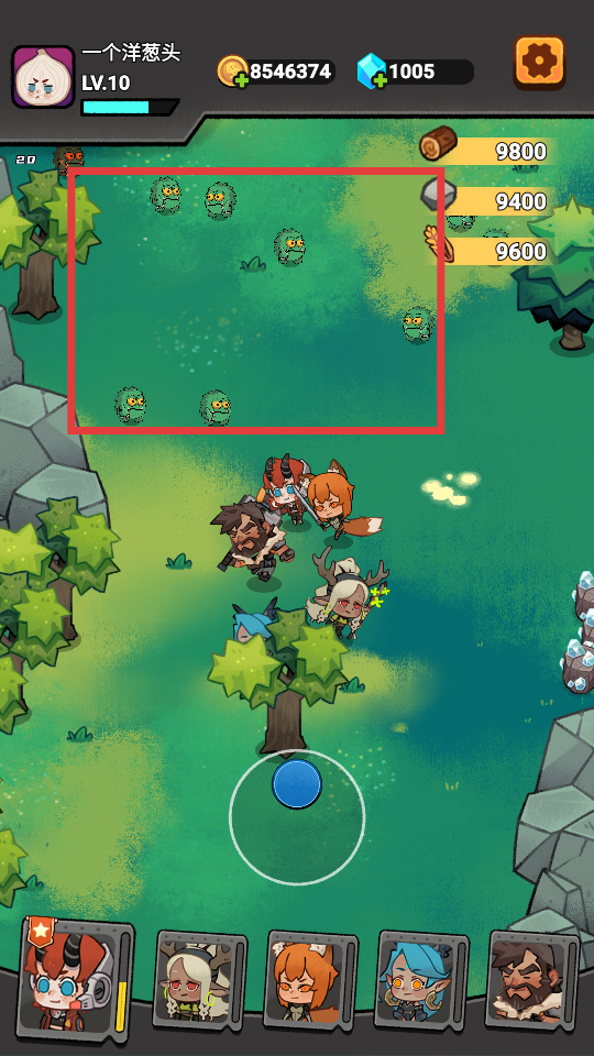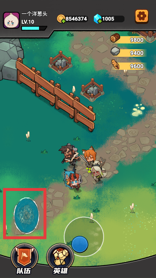 4、到达新场景后,调整队伍站位,指挥英雄进行战斗,消灭画面中出现红框内的怪物。