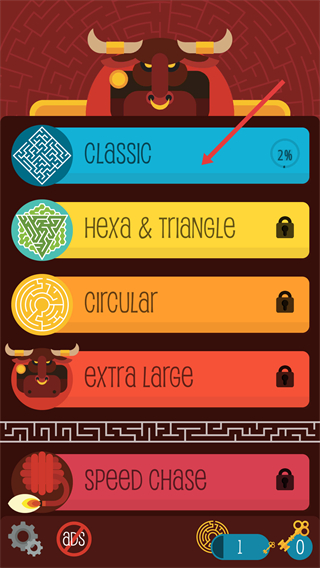 1、在游戏模式选择界面,点击已解锁的【CLASSIC】模式选项,进入该模式的迷宫关卡。