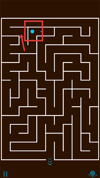 3、引导蓝色小球移动至迷宫的终点区域,成功逃脱迷宫,推进关卡进度。