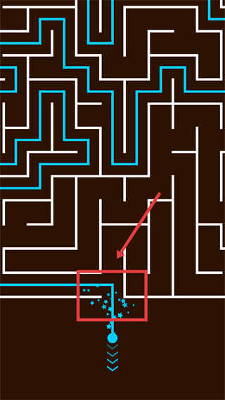 2、进入CLASSIC模式迷宫后,操作初始位置的蓝色小球,开始探索迷宫的可行路径。