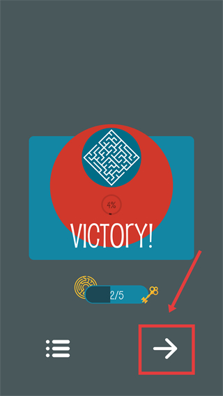 4、关卡通关后,在显示【VICTORY!】的界面中,点击箭头按钮,继续进入后续内容。