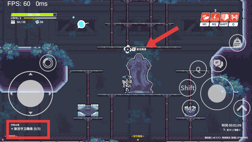 3、游戏界面左下方【行动目标-激活守卫雕像-0/3】提示,找到雕像并按指示进行【激活雕像】操作。