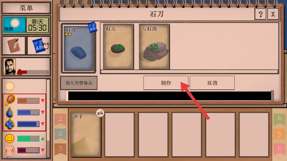 4、制作石刀,利用石头和大石块,提升工具能力,便于后续生存操作。