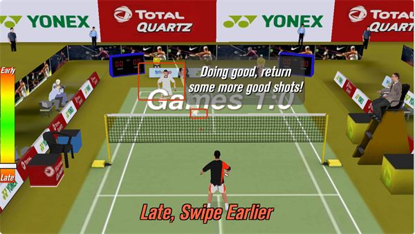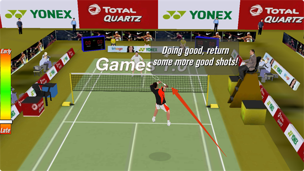 1、在羽毛球游戏中,按照提示【Doing-good,-return-some-more-good-shots!】,专注打出优质球,开启比赛挑战。