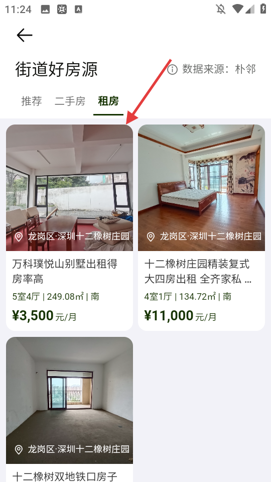 2、点击心仪房源,进入其详情页面。