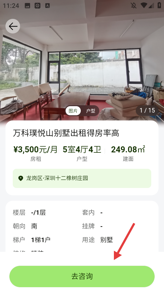 3、在房源详情页面,点击【去咨询】。