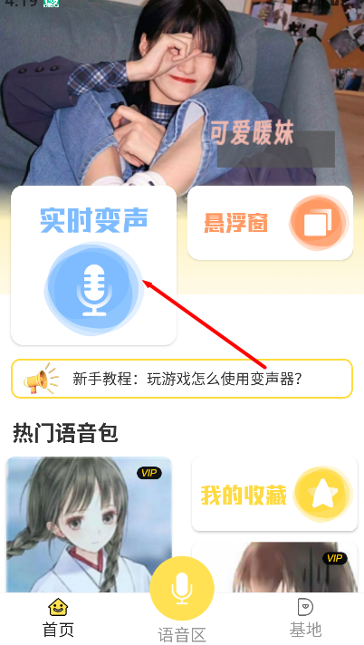 1、在进入《和平游戏变声器》后,点击“实时变声”功能,就能在语音交流中立即切换不同的音色效果。