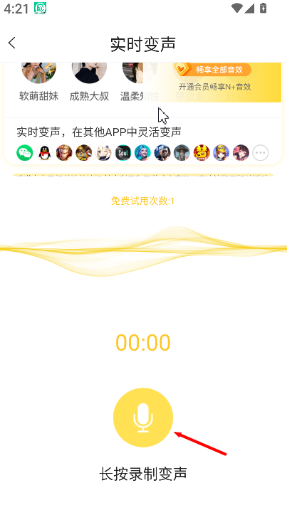 1、实时变声功能,支持在语音交流时直接应用效果,完成即时的音色转换。