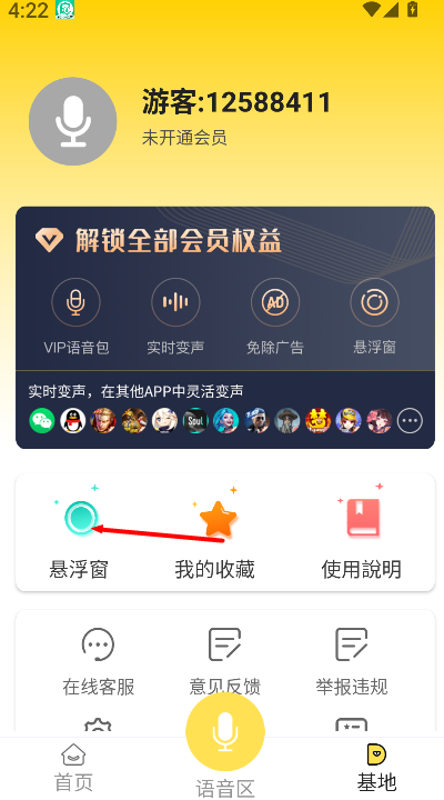 4、软件还支持开启悬浮窗口功能,让变声操作悬浮在屏幕上方,方便在其他场景下快速使用。