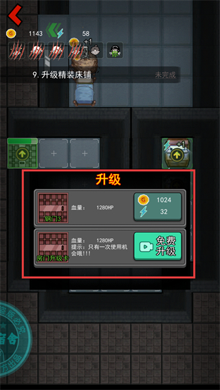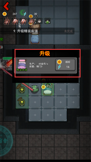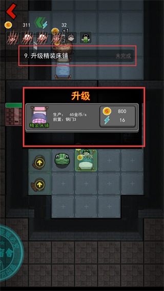 3、完成【精装床铺】的升级,花费【800】金币与【16】闪电。