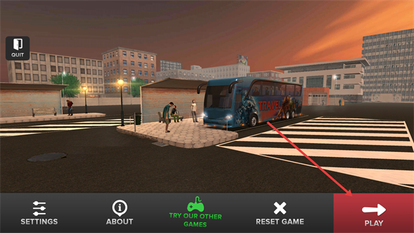 1、点击【PLAY】进入巴士驾驶模拟游戏场景,开启城市巴士驾驶之旅。