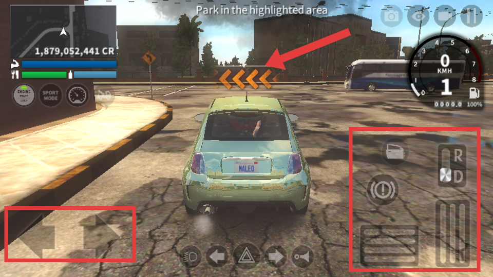 2、驾驶时,利用左侧方向键控制转向,右侧操作区切换挡位等,朝着橙色箭头指示的高亮区域行驶。