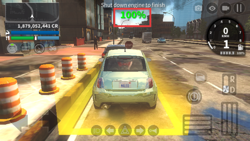3、将车精准停入黄色高亮区域,当上方显示【100%】时,完成停车任务的关键步骤。