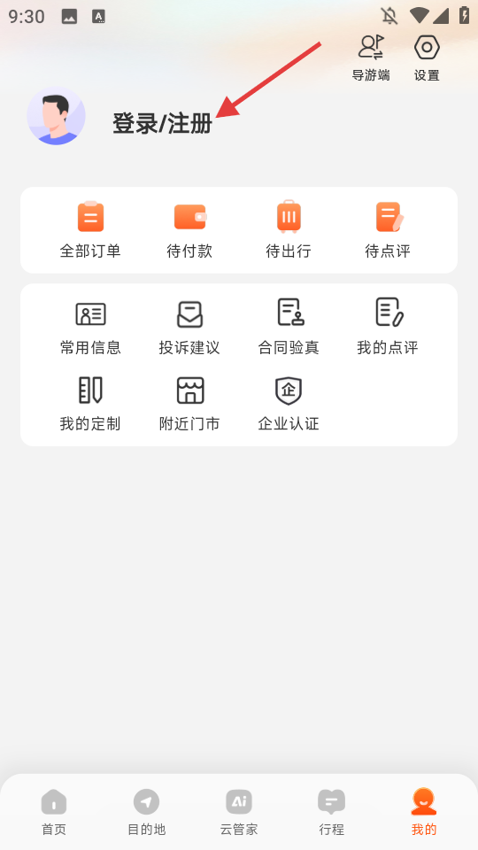 2、点击【登录/注册】,进入登录/注册页面。